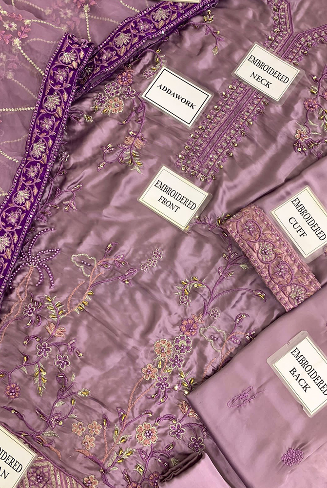 – Front: Embroidered Shamoze Silk with Adda Work and Stone Work