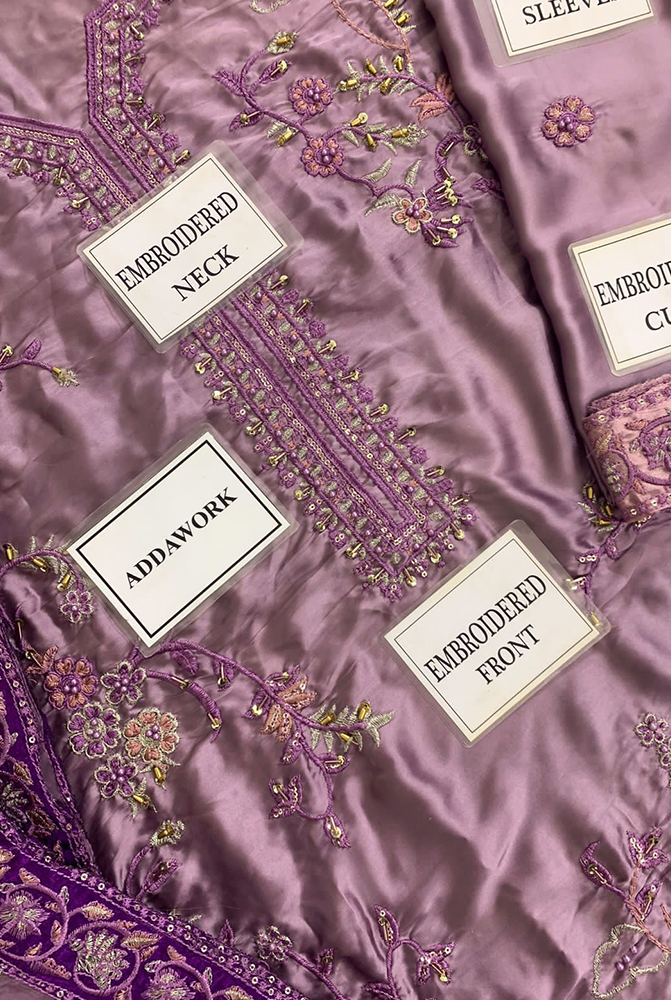 Be the first to review “Embroidered Shamoze Silk with Adda Work and Stone Work Trouser: Dyed Shamoze Silk Dupatta: Heavy Embroidered Silk with 4-Side Embroidered Attached Lace`”