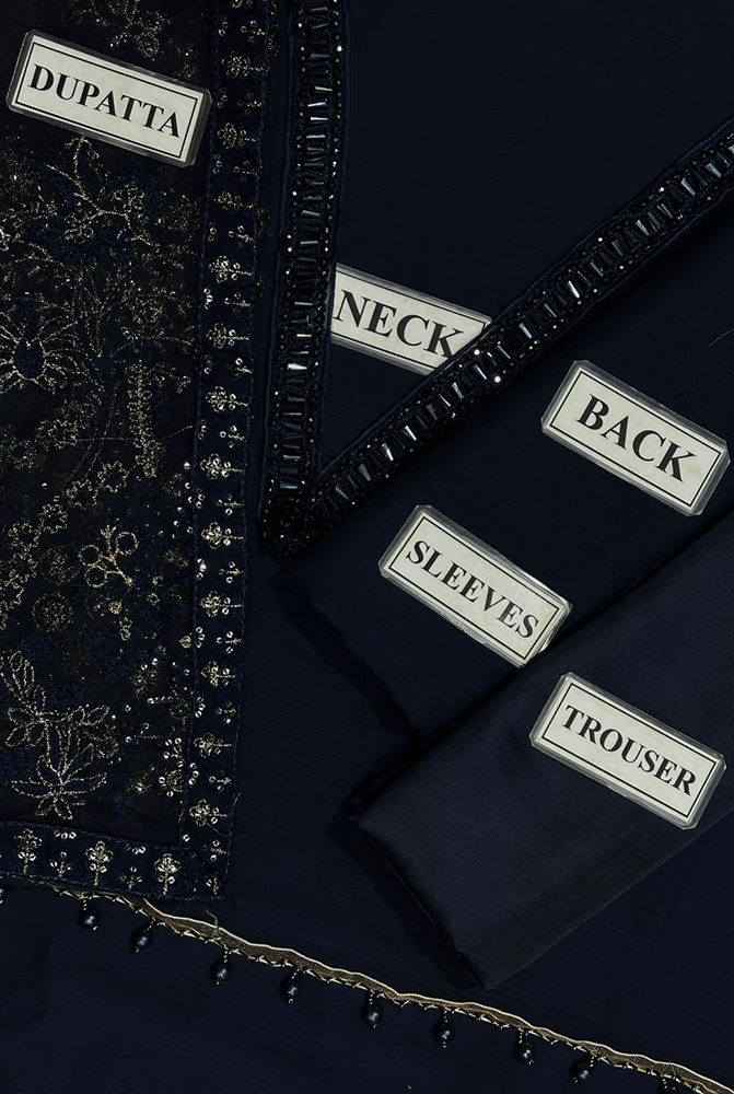 BRAND-ALIZEH Unstitch Replica Shirt: CHIFFON Dupatta: NET Trouser: SATIN SILK