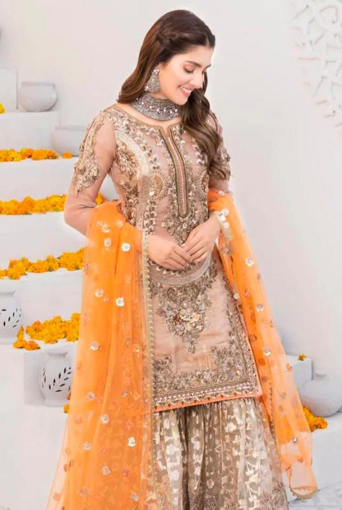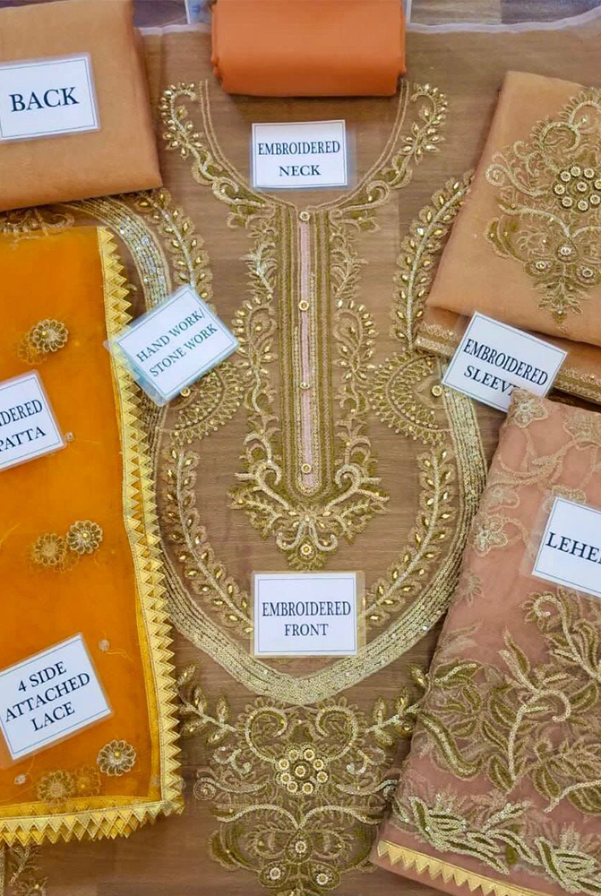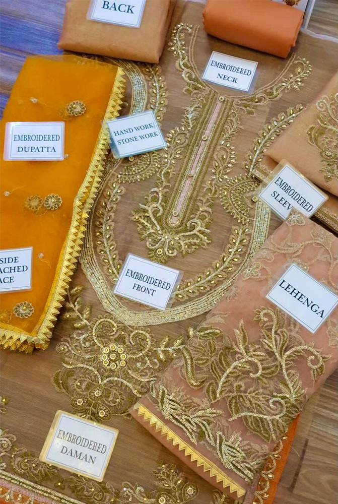 Neck Heavy Embroidered With Handwork ON FABRIC Front Heavy Embroidered With Handwork & Stone Work Daman Heavy Embroidered With Handwork & Stone work