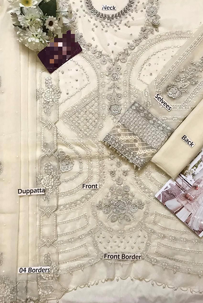 Fully Heavy Embroidery Semi pure Chiffon Front with cut Work