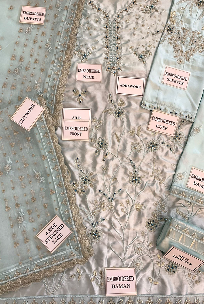 Sleeves Heavy emb with sequence work and Totally handwork Adda work