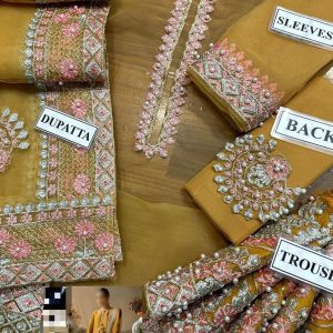 FRONT DAMAN embroidery on organza with beautiful tussules Attached