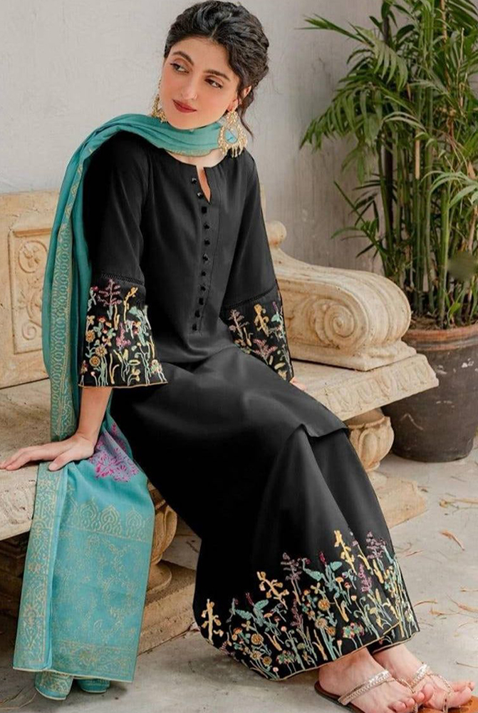 Front Heavy Embroidered ◾Sleeves Heavy Embroidered ◾Heavy Embroidered Trouser (Premium Quality) ◾With Digital Printed Shawl